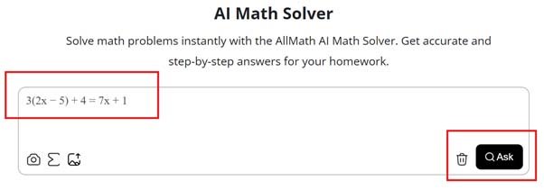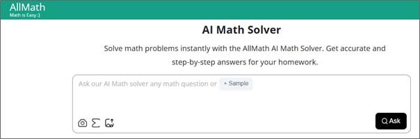 A number of AI Math Solving tools are available on the internet. Each one has its own strengths and working methods. But generally, all the AI-based math tools work in a similar manner. They need an input prompt, like an equation or a word problem. After that, the tools solve that question in a series of steps. For better understanding, we will proceed with AllMath AI Math Solver to give you a demo. It is one of the reliable tools we found after testing various options. We’ll use it in the following demonstration.
